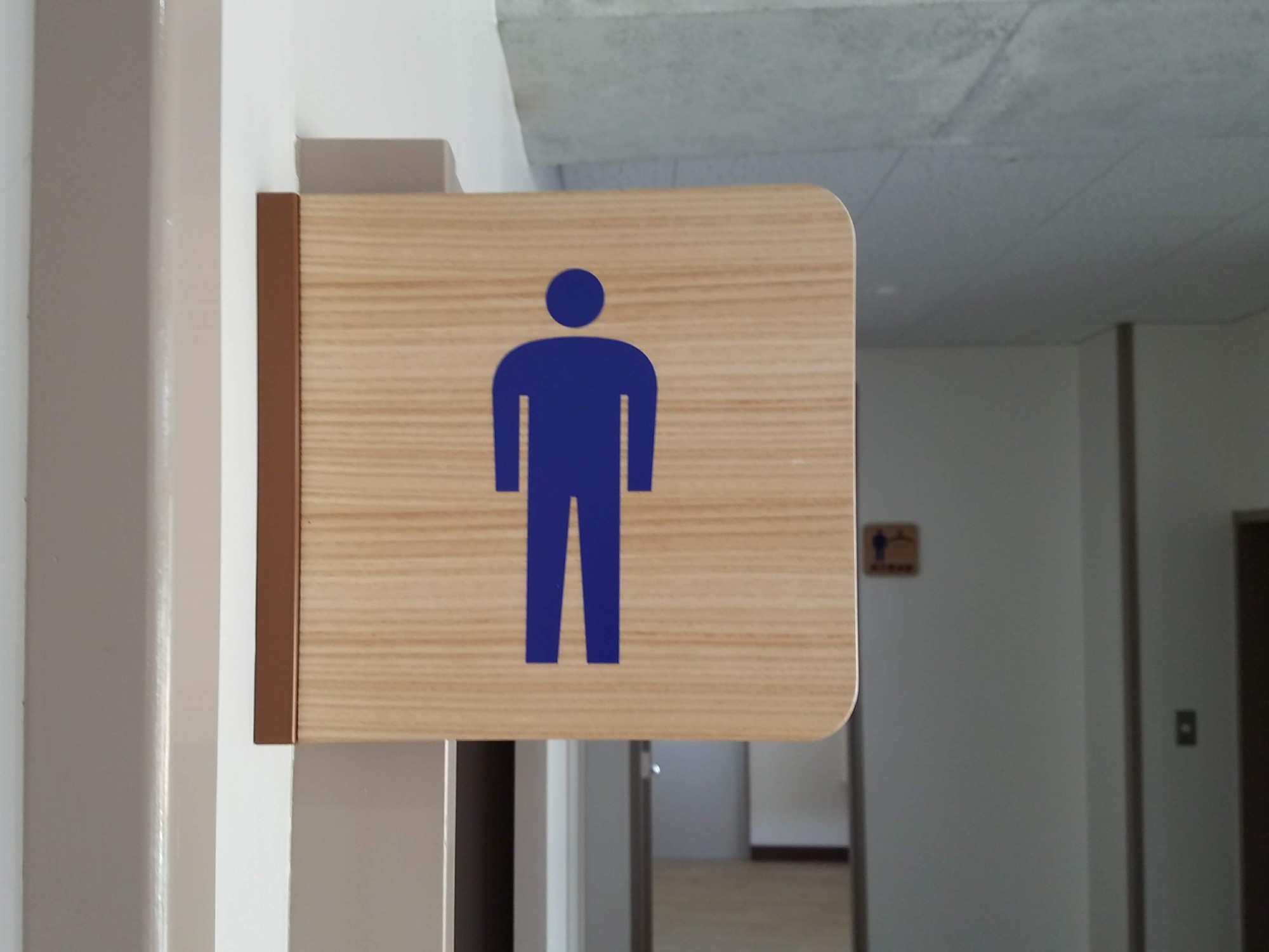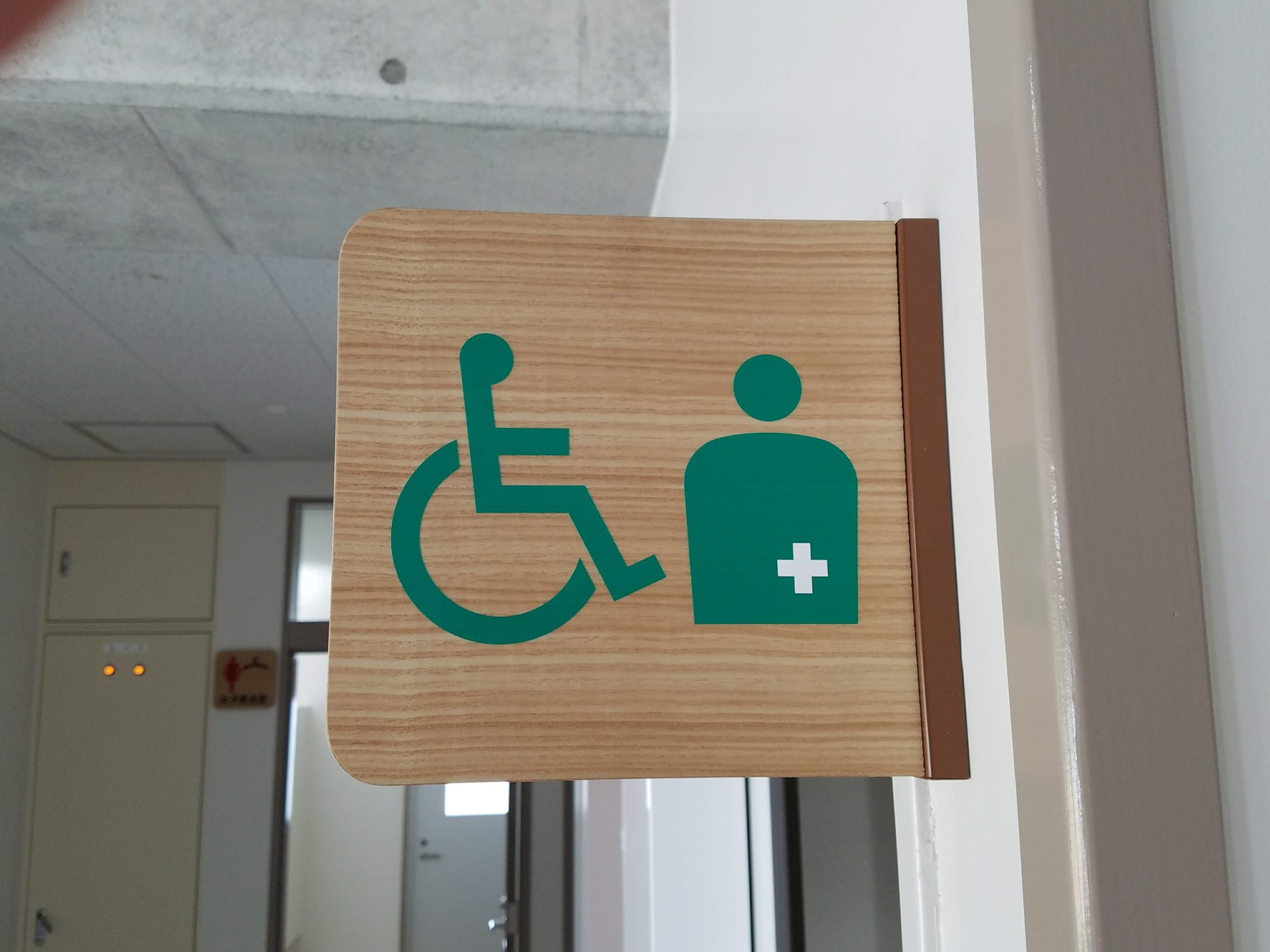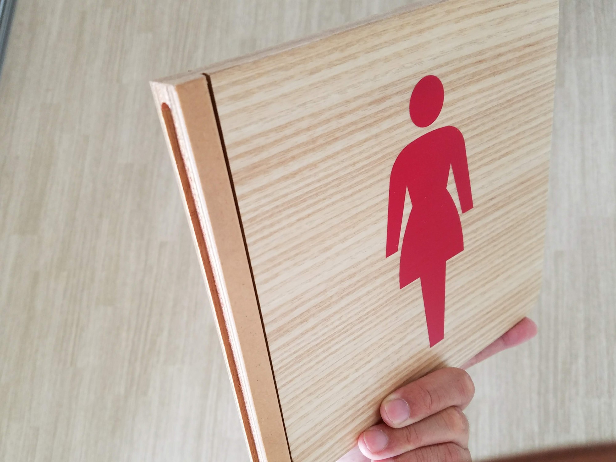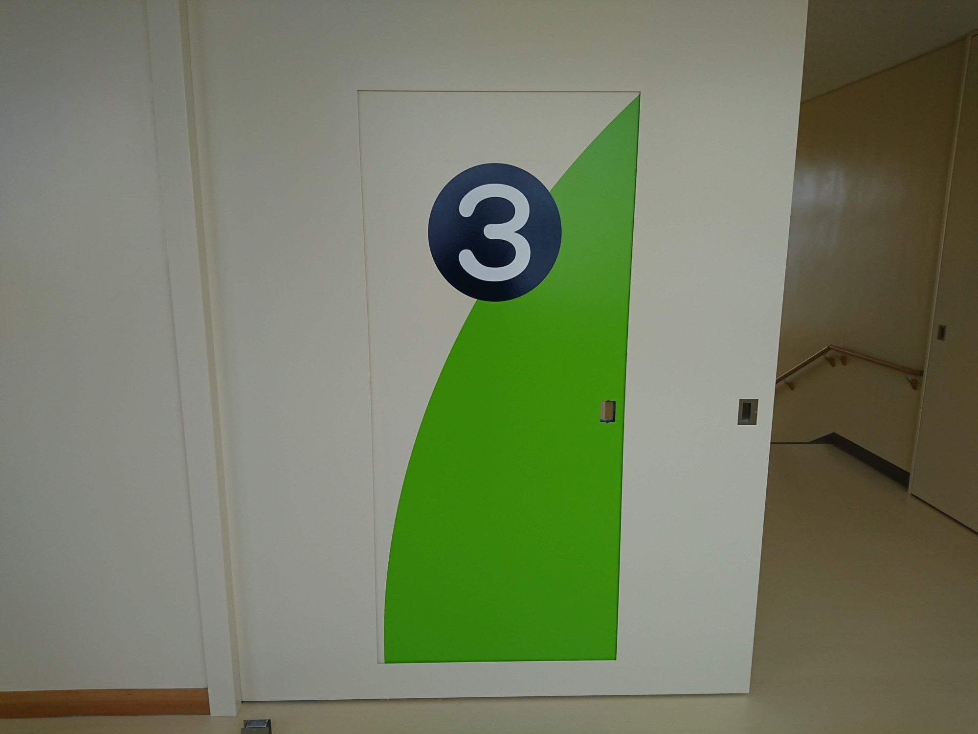 木目のあたたかみにある素材で建物にマッチングしています。イラストはシルク印刷しています。学校施設に使用しました。