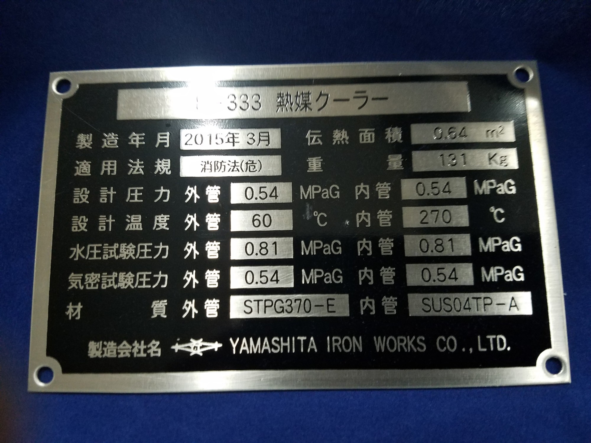 主に産業機械、タンクに貼られていたりします。屋外対応 エッチング加工 焼付塗装